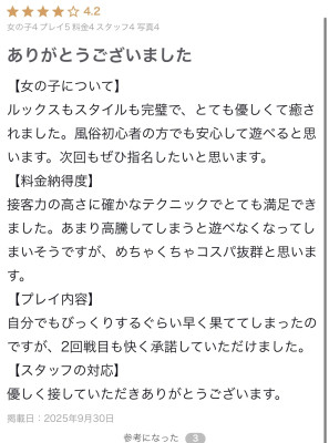 口コミお礼💌 2025/10/12 15:43:20 素敵な口コミありがとう😭🩷ぜーんぶ褒めてくれて嬉しいよ🥺🥺🥺🥺💕うるのてこきふぇらも大絶賛してもらえて🥺2回もきもちよくなってもらえてよかった🥺💕機会あればぜひまたよんでねっ💕
