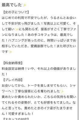 口コミお礼💌 2025/10/12 15:46:42 素敵な口コミありがと😭😭😭はぷにんぐあったけどたっくさん気持ちよくなってもらえてよかったよ💕💕💕たっくさんほめてくれたの嬉しかったよ🥺🥺🥺お話も濃厚えっ◯もたのしかったぁ!!また機会あればぜひよんでねっ💕💕