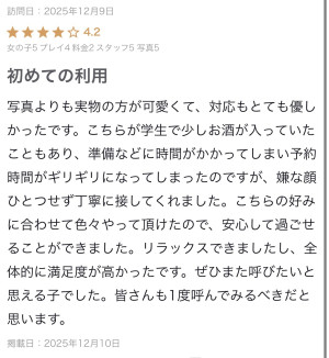 口コミお礼💌 2025/12/10 13:45:02 素敵な口コミありがとう😭🫶可愛い子きたからよかったぁあって嬉しかったよ🥺💖うるのテクで気持ち良くなってもらえてよかった🫶一つ一つの仕草が可愛かったよ🫶🫶また呼ぶ!っていってもらえたから機会あればまたよんでねっ💖
